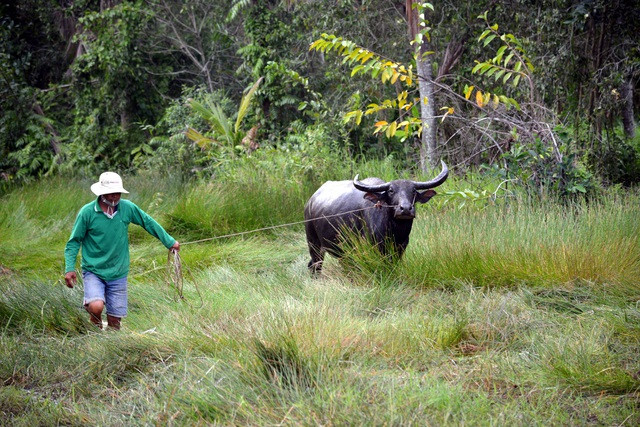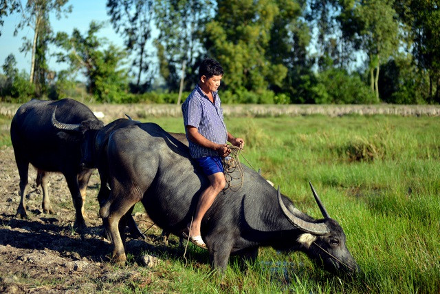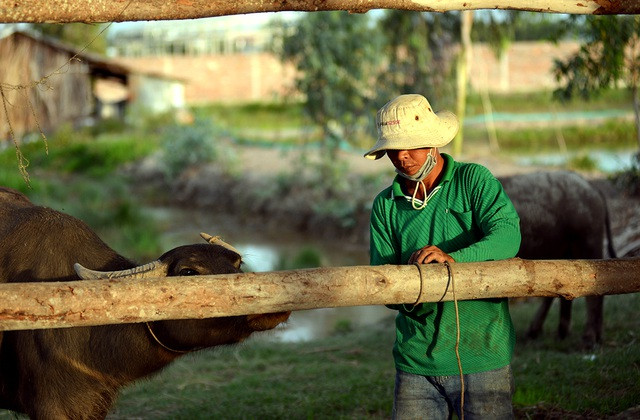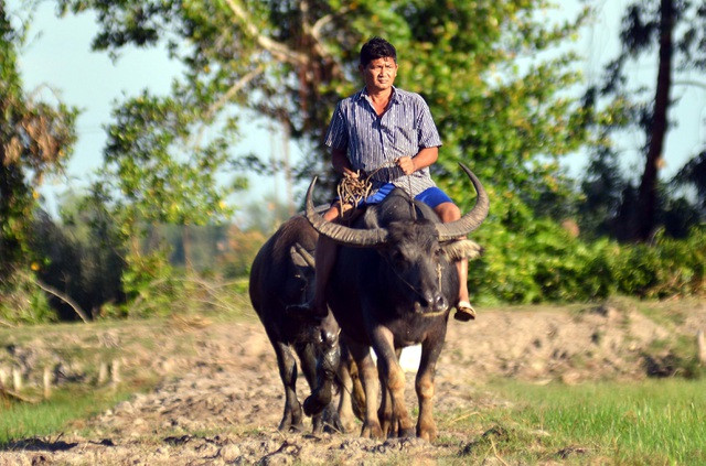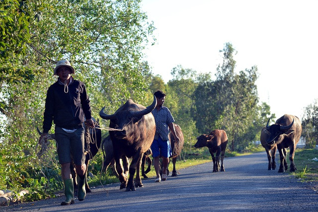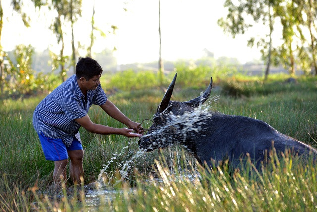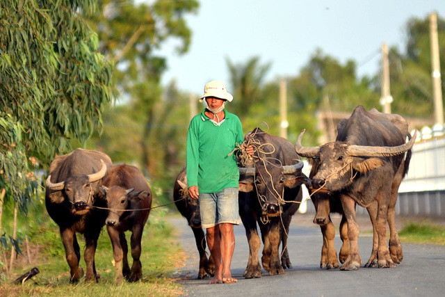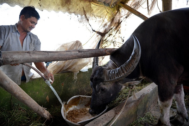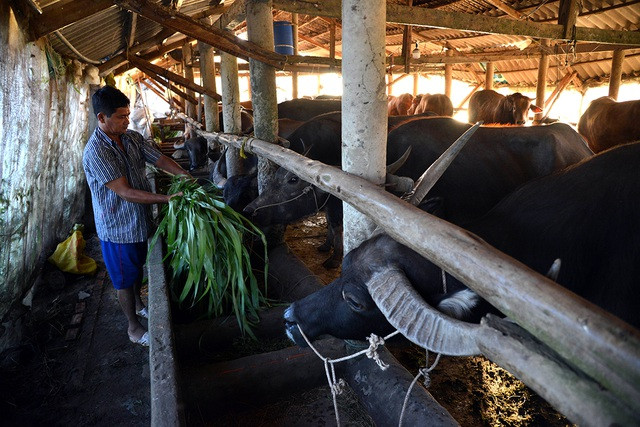 Do trâu nhiều nên anh Ngự phải thuê thêm người để chăm sóc.