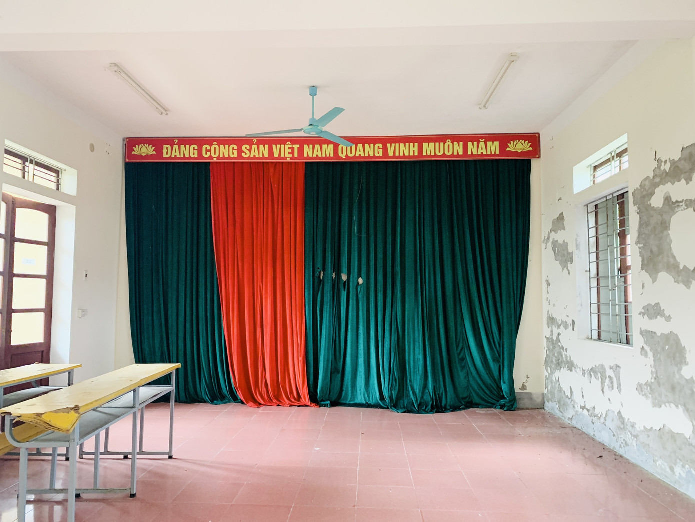 Bên trong phòng học nhếch nhác, vôi ve bong tróc...