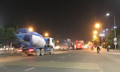 Đến 22 giờ, thời điểm xe tải nặng bắt đầu được phép lưu thông vào khu vực nội đô nhưng trên đường Hoàng Văn Thụ (quận Phú Nhuận) đã nườm nượp các loại xe bồn, container chạy ầm ầm. Tại ngã tư Phú Nhuận, đèn tín hiệu giao thông chuyển vàng, một chiếc xe container không giảm tốc độ mà liên tục rú còi rồi rồ ga, vượt mặt các phương tiện khác khiến nhiều người khiếp sợ. Cảnh tượng tương tự cũng diễn ra trên đường Nguyễn Văn Trỗi (quận Phú Nhuận) vào lúc 22 giờ 10 phút. Những xe này chạy từ đường Cộng Hòa qua Hoàng Văn Thụ rồi rẽ vào Nguyễn Văn Trỗi. Số khác theo đường Cách Mạng Tháng Tám lưu thông vào nội đô, hầu hết đều có kích cỡ lớn nhưng liên tục lấn tuyến, giành đường. Không ít xe chở đất, cát cao quá thành nhưng lại phủ bạt sơ sài nên chỉ cần một cú dằn xóc là vật liệu rơi đầy đường, bụi mù mịt.