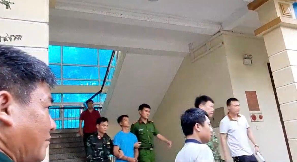 | Triệu Quân sự (giữa) tại trụ sở Công an huyện Hà Trung |