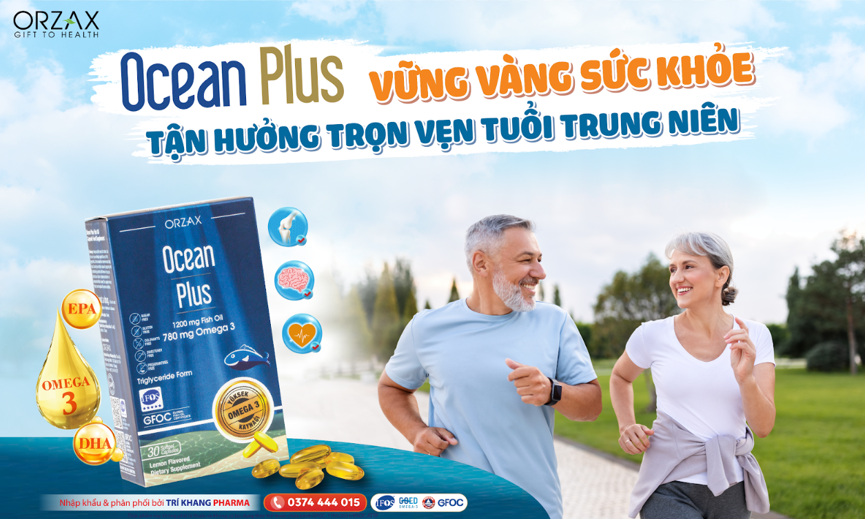 Sức khỏe tim mạch không chỉ ảnh hưởng đến tuổi thọ mà còn tác động lớn đến chất lượng cuộc sống, nhất là ở độ tuổi trung niên và cao tuổi. Bên cạnh việc duy trì lối sống lành mạnh, bổ sung Omega 3 từ những sản phẩm chất lượng như TPBVSK TPBVSK Ocean Plus là giải pháp tối ưu giúp bảo vệ tim mạch và ngăn ngừa các bệnh lý nguy hiểm. Bằng cách kết hợp giữa chế độ ăn uống hợp lý, tập luyện và sử dụng sản phẩm đúng cách, người trung niên, cao tuổi hoàn toàn có thể duy trì một trái tim khỏe mạnh và tận hưởng cuộc sống đầy ý nghĩa.