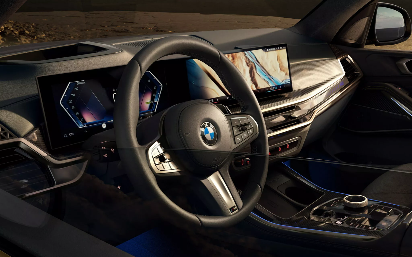 Tiến vào cabin, BMW cung cấp cho X5 Dark Flame bộ ghế bọc da tổng hợp cao cấp Sensafin màu đen, cùng với trần xe bọc Alcantara màu xám kết hợp cửa sổ trời Panorama với hiệu ứng ánh sao.