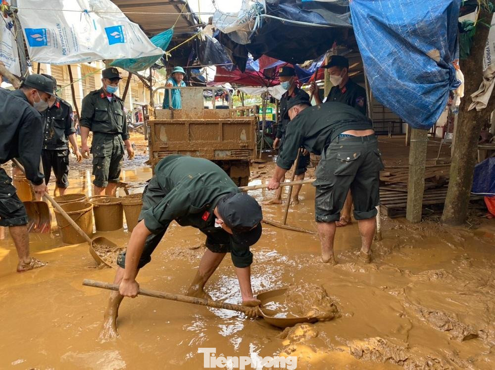 | Mưa lớn kéo dài khiến chợ Bình Hải (huyện Bình Sơn) bị nước lũ trên cao chảy xuống gây ngập cục bộ, bùn đất lấp đầy các khu vực quầy hàng và lối đi. Sáng 12/10, hàng chục cán bộ chiến sĩ Tiểu đoàn 3, Trung đoàn Cảnh sát cơ động Nam Trung Bộ- Bộ Tư lệnh Cảnh sát Cơ động (K02) đã ra quân hỗ trợ người dân khắc phục hậu quả sau mưa lũ. |