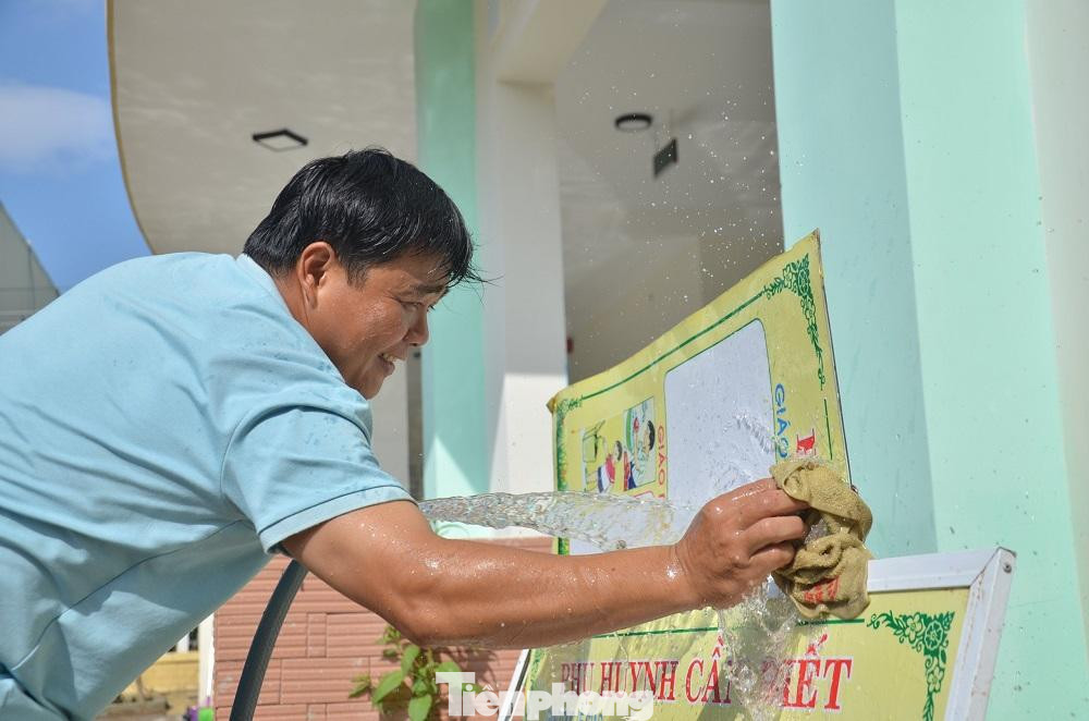 | Tại trường Mầm non Hành Dũng (huyện Nghĩa Hành), chính quyền địa phương đã huy động hàng chục chiến sĩ, dân quân trên địa bàn xã cùng lực lượng đoàn thanh niên khẩn trương hỗ trợ trường học dọn dẹp bùn đất, nhanh chóng ổn định và tổ chức giảng dạy trở lại. |