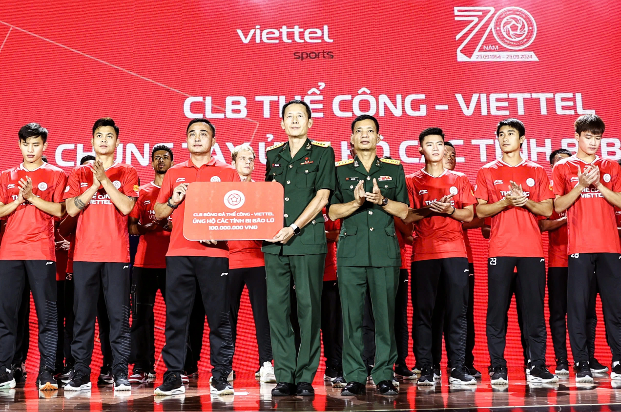 Tại buổi lễ sáng nay, toàn bộ đại biểu, HLV và các cầu thủ tham dự chương trình đã dành một phút mặc niệm các nạn nhân của cơn bão số 3 Yagi. CLB Thể Công Viettel cũng dành 100 triệu đồng ủng hộ đồng bào vùng bão lụt.