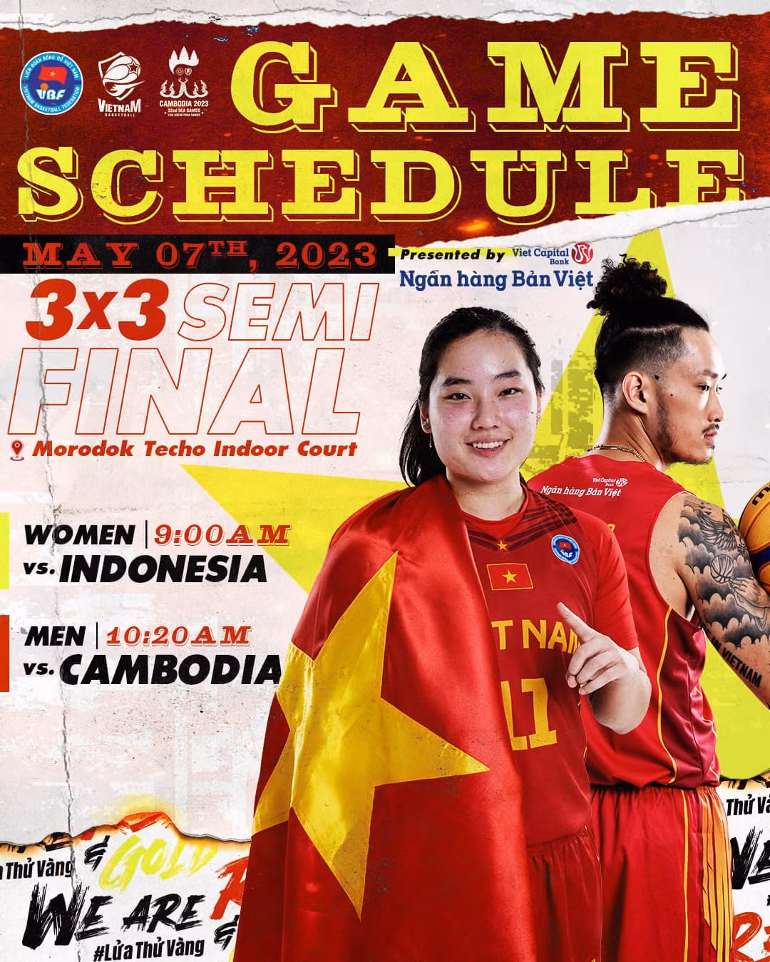 Các chàng trai Đội tuyển bóng rổ Quốc gia Việt Nam hạng mục 3x3 sẽ nằm ở Bảng A, với sự góp mặt của các đội bóng Indonesia, Philippines và Laos (ĐTQG không tham dự ở kì SEA Games 31).