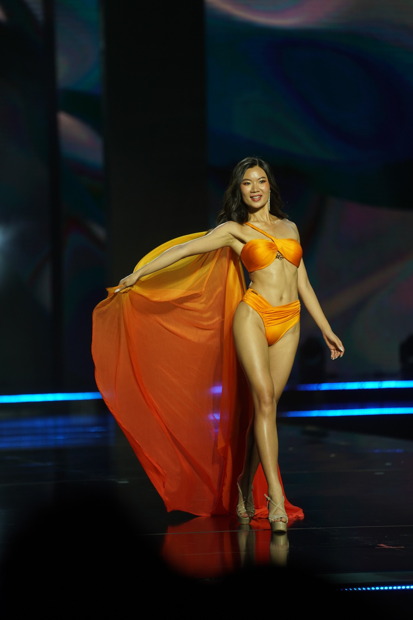 Top 18 của đêm chung kết bước vào phần thi thứ 2 – trình diễn bikini. Các người đẹp diện bikini tông màu cam nóng bỏng và khoẻ khoắn, trình diễn trên nền nhạc sôi động do ca sĩ Mỹ Mỹ và Mai Ngô trình bày.