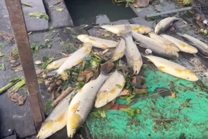 Theo người dân, cá trong lồng bè có hiện tượng ngộp thở và chết hàng loạt, đa số là các loại cá rô phi, chép, trê, lăng, mè hỏi, trắm. Cá chết sau trận mưa lớn ngày 28-5.