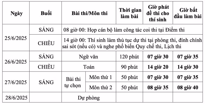 Kỳ thi tốt nghiệp THPT năm 2025 diễn ra trong hai ngày 26-27/6, với hai lịch thi dành cho thí sinh học theo chương trình mới và cũ.
