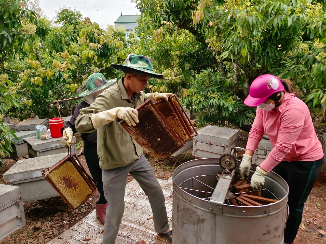 | Khách tìm đến tận vườn đặt mua mật ong. Mật ong hoa vải được đánh giá là loại mật ong ngon, có giá trị nhất trong các loại mật ong. |