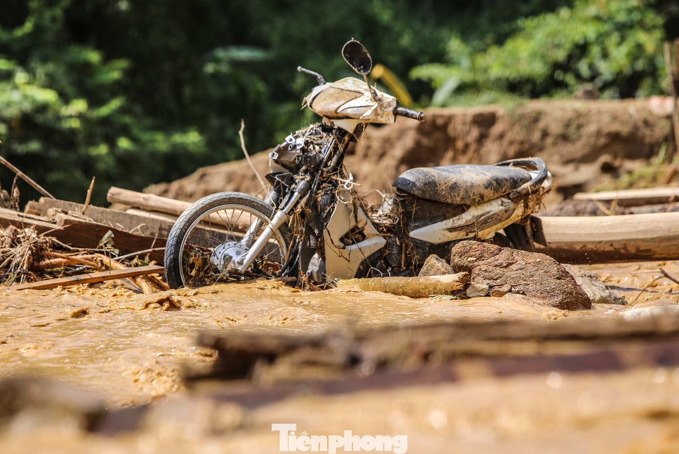 | Dép, vành khăn đội đầu, chiếc xe lăn, quần áo hay những chiếc xe máy hư hỏng, vùi lấp dưới lớp bùn đất dày 3-4 m là những gì còn sót lại sau vụ sạt lở. |