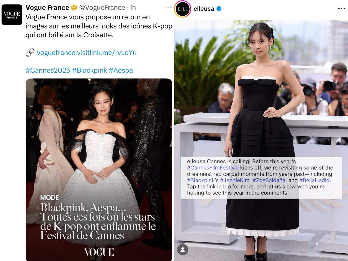 Trước thềm LHP Cannes 2025, nhiều tạp chí thời trang như VOGUE, ELLE vẫn đề cập Jennie BLACKPINK nằm trong top mặc đẹp qua các mùa Cannes, được cho là hint về việc cô sẽ "tái xuất" vào năm nay.