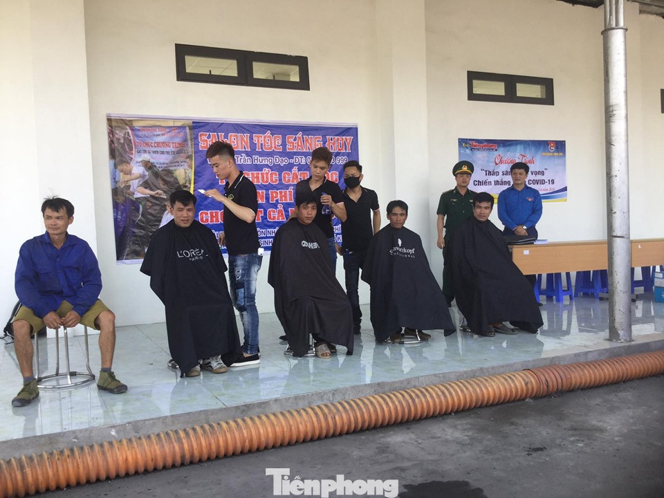 Bên cạnh đó, nhiều lao động đã được các thợ cắt tóc Salon Sáng Huy chỉnh sửa mái đầu gọn gàng, sạch đẹp. Nhiều người xếp hàng để đến lượt cắt tóc vì đã nhiều tháng nay họ bù đầu vì COVID-19.