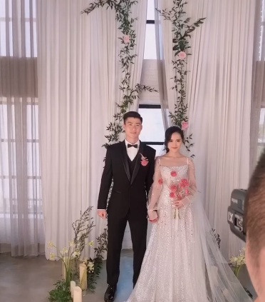 Duy Mạnh trổ tài tâng bóng khi chụp ảnh cưới: