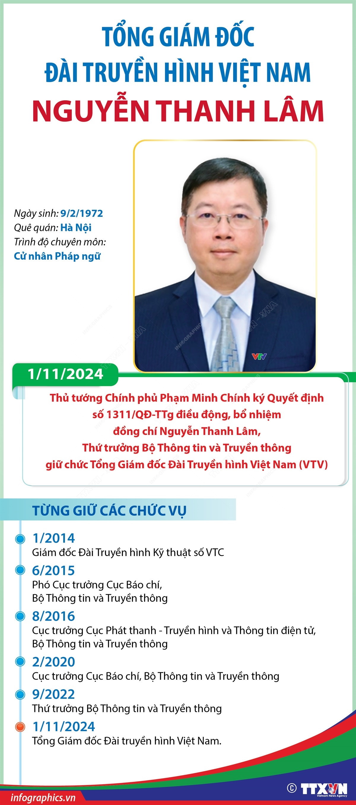 Ngày 1/11, Thủ tướng Chính phủ ký quyết định điều động, bổ nhiệm ông Nguyễn Thanh Lâm, Thứ trưởng Bộ Thông tin và Truyền thông, giữ chức Tổng Giám đốc Đài Truyền hình Việt Nam (VTV).