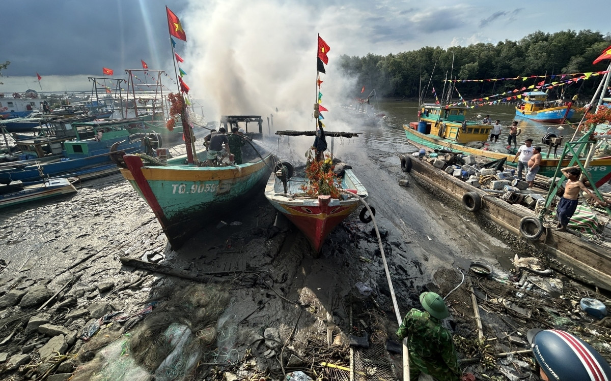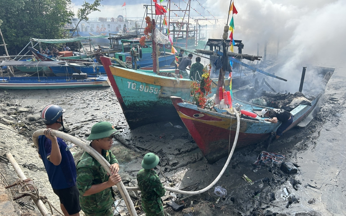 Sau gần 1 tiếng rưỡi chữa cháy, đám cháy cơ bản được khống chế. Tuy nhiên, ngọn lửa đã thiêu rụi hoàn toàn phần ca bin và khoang máy cùng ngư lưới cụ của 2 tàu. Một chiếc tàu khác bị cháy phần đuôi. Rất may vụ hoả hoạn không gây thiệt hại về người.