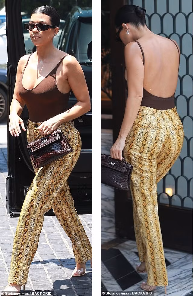 Hôm thứ Năm (giờ địa phương), cánh săn ảnh bắt gặp Kourtney Kardashian xuống phố ăn trưa tại nhà hàng ở Los Angeles.