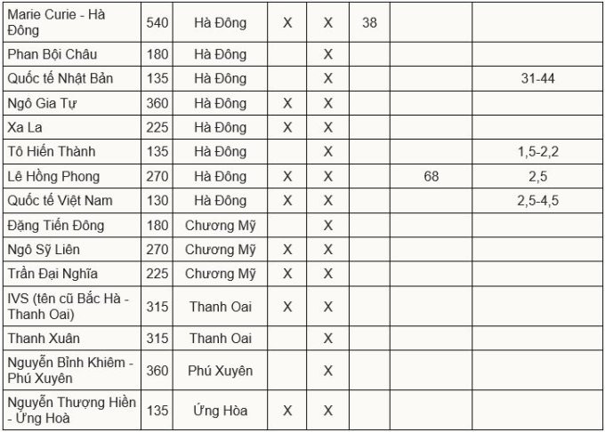 Trường Quốc tế Nhật Bản hay H.A.S (Hà Đông) có hệ thu trên 20 triệu đồng một tháng.