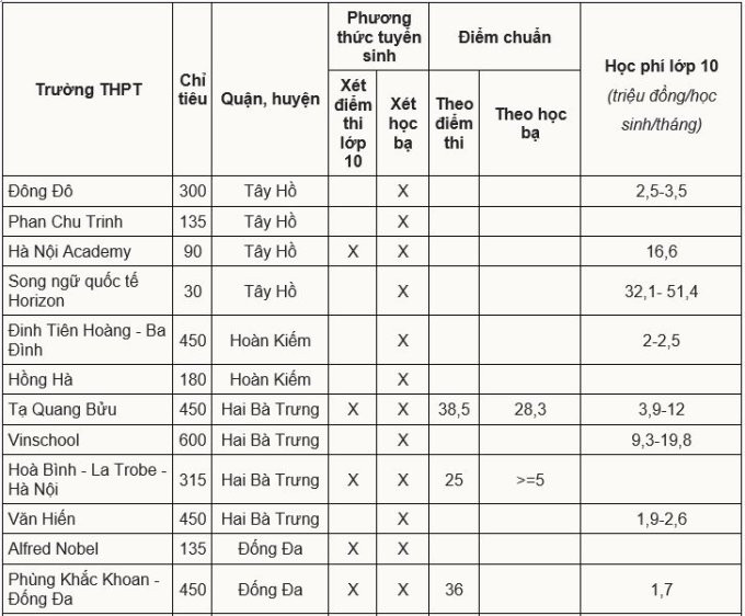 Năm ngoái, cả 95 trường tư ở Hà Nội đều tuyển học sinh lớp 10 bằng cách xét học bạ, hơn 30 trường xét thêm điểm thi lớp 10 của Sở.