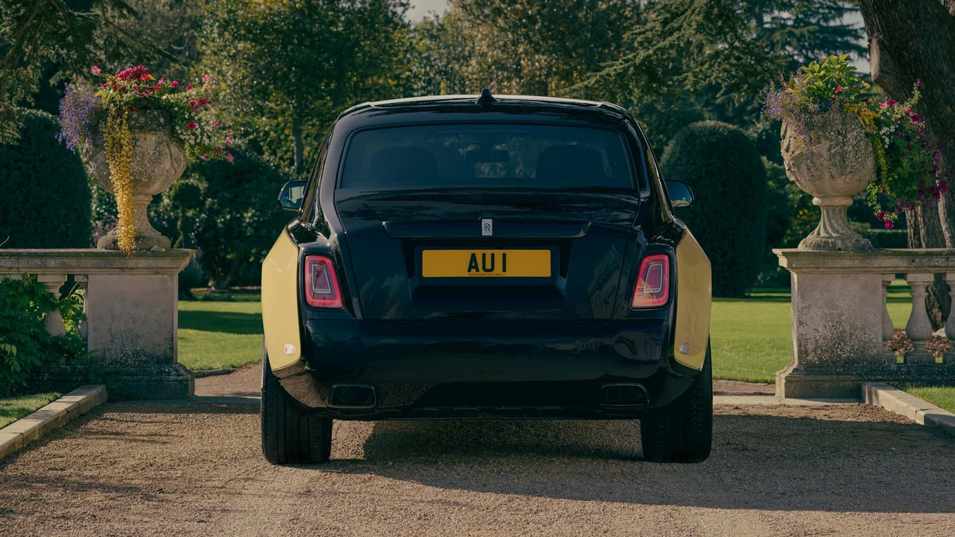 Theo đó, phối màu ngoại thất tương phản vàng/đen của chiếc Phantom III Sedanca de Ville đã được bê nguyên sang chiếc sedan Phantom Extended trục cơ sở dài mới. Tương tự là kiểu dáng của bộ mâm dạng chảo 21 inch màu đen bóng với viền bạc đi kèm logo Rolls-Royce xoay đặc trưng.