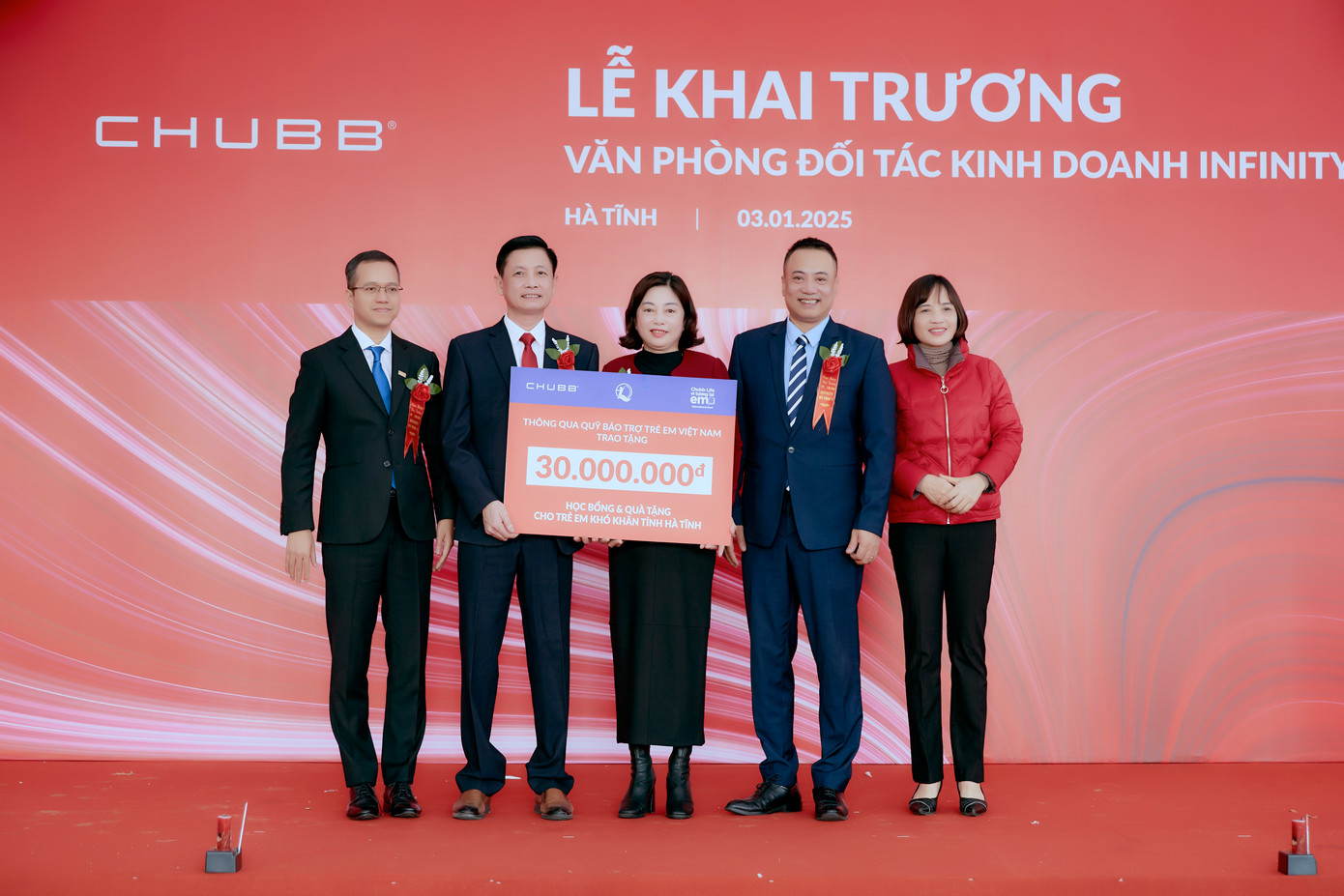 Để đánh dấu cột mốc này, tại lễ khai trương, thông qua Quỹ Bảo trợ trẻ em Việt Nam, Chubb Life Việt Nam đã trao tặng 30.000.000 đồng cho học sinh có hoàn cảnh khó khăn tại địa phương. Tiếp nối chương trình “Chubb Life vì tương lai em”, hoạt động này là một trong những nỗ lực không ngừng nghỉ của Chubb Life Việt Nam nhằm nuôi dưỡng thế hệ tương lai tại các địa phương mà tập đoàn đang hiện diện.