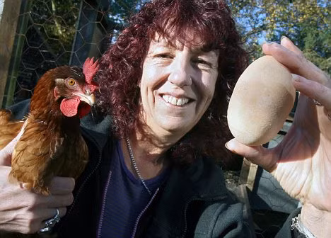 Denise (52 tuổi)- một người làm vườn ở Christchurch, Dorset cho biết bà chưa bao giờ nhìn thấy một quả trứng gà nào lớn như thế trong suốt 15 năm chăn nuôi gà.