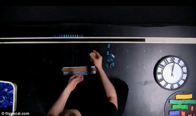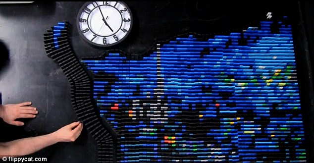 Để tạo ra tác phẩm độc đáo này, FlippyCat đã sử dụng một chiếc thước kẻ nhỏ và một chiếc thước kẻ to để cố định các quân cờ sao cho chính xác từng điểm so với bản vẽ gốc. Sau khi thất bại ở lần đầu tiên, tới lần thứ hai, người họa sỹ này đã phải mất tới 11 tiếng đồng hồ miệt mài sắp xếp những quân cờ domino và cuối cùng, cho ra đời một tác phẩm tuyệt đẹp.