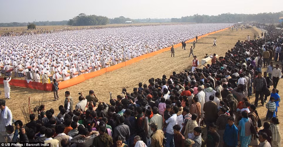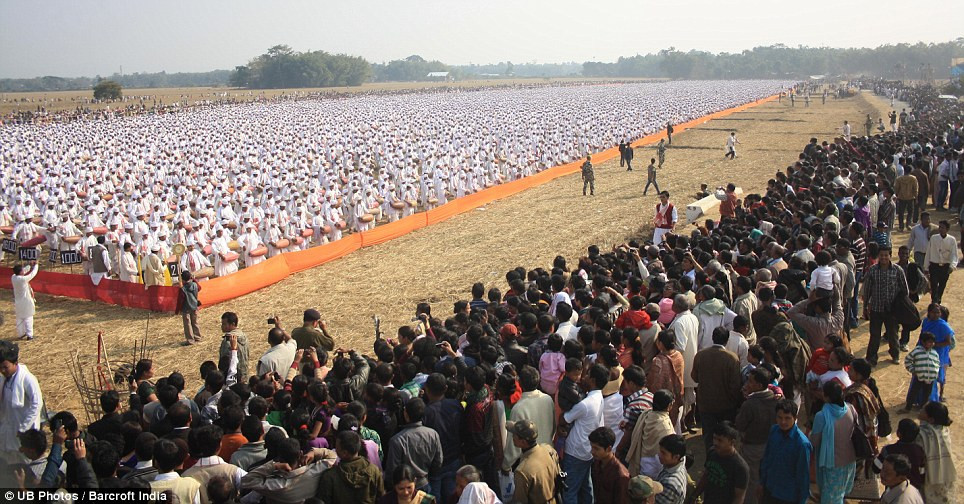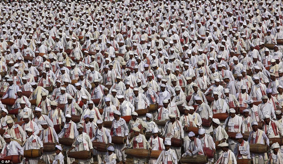 | Quang cảnh gần 15.000 người Ấn Độ tập hợp chơi trống . |