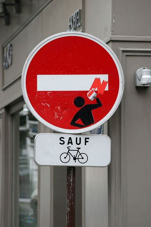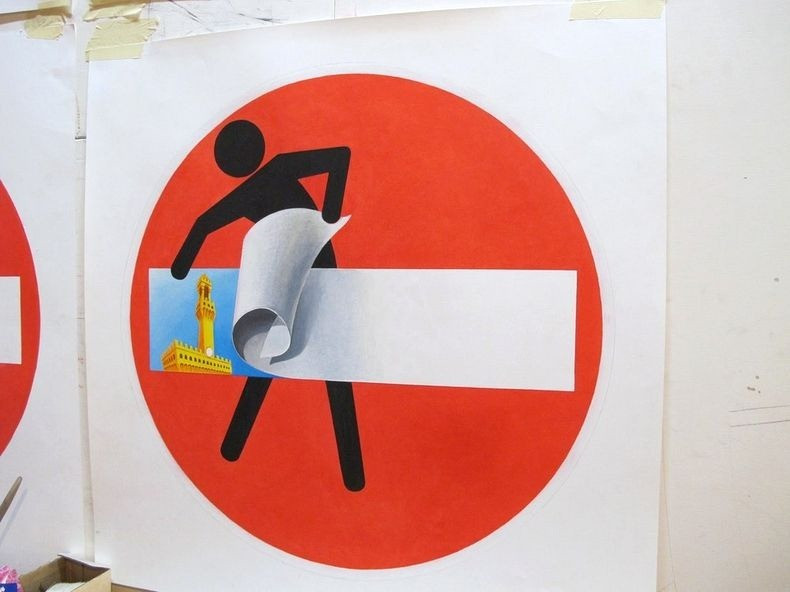 Để thay đổi một biển giao thông này, nghệ sĩ Clet Abraham chỉ cần khoảng 30 giây. Nghệ sĩ này cho biết, mục đích thay đổi những biển hiệu là đem lại niềm vui cho những người đi đường.