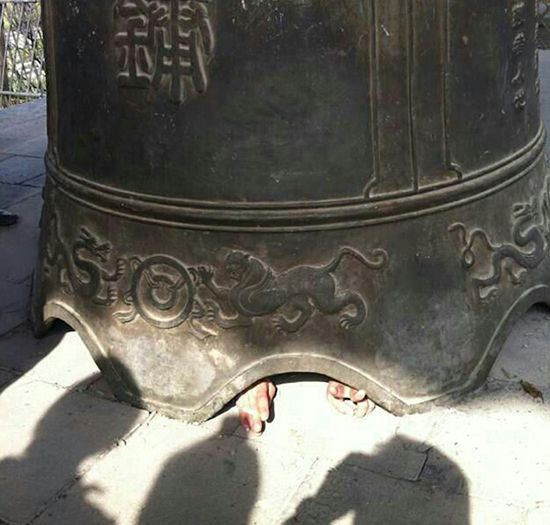 Khi đang đứng bên dưới chuông để chụp ảnh, dây giữ chuông bất ngờ bị đứt khiến chiếc chuông khổng lồ rơi xuống, làm anh Van Lin bị kẹt bên trong. May mắn là chiếc chuông khá lớn nên anh chỉ bị nhốt bên trong mà không bị thương tích gì nghiêm trọng.