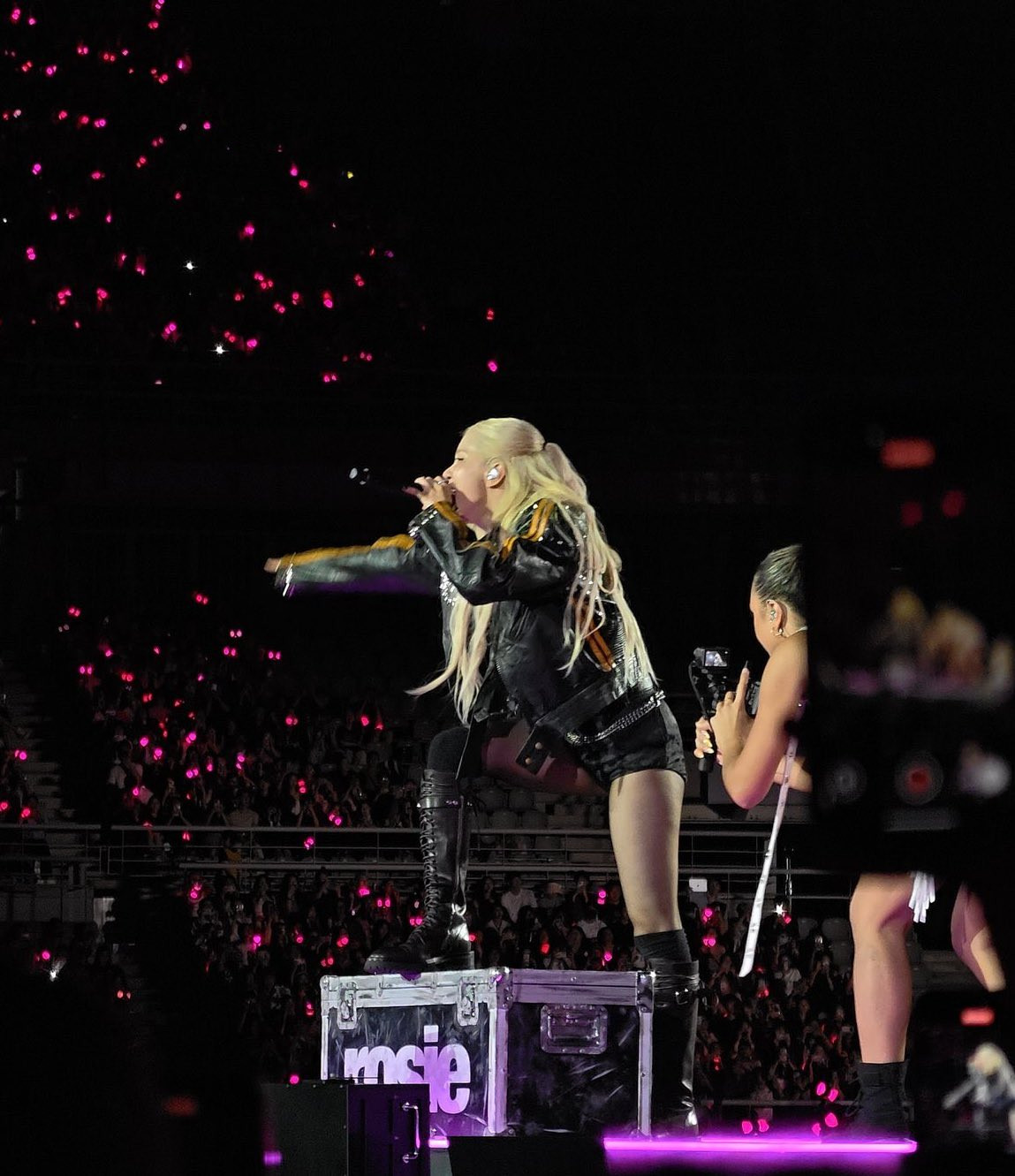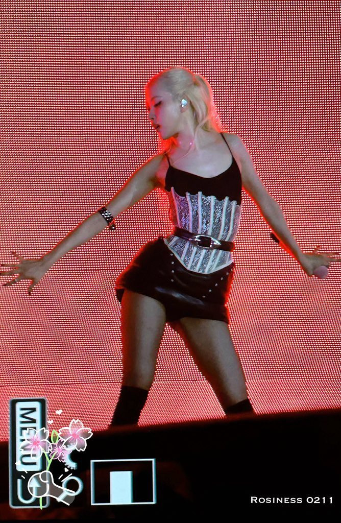 Rosé bước vào sân khấu solo với thần thái của một pop star thực thụ. Giọng ca sinh năm 1997 xuất hiện đầy mê hoặc trong micro short đen, áo da biker khoác ngoài áo kim tuyến hai dây và bốt cao cổ.