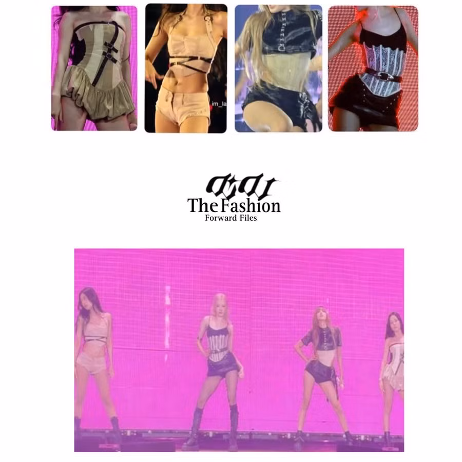 Thương hiệu DIDU tài trợ cho trang phục của BLACKPINK trong đêm diễn concert mở màn world tour DEADLINE. Nhà mốt dùng dải màu nâu, be, đen kết hợp kiểu dáng ôm sát, đai corset tôn lên sắc vóc siêu thực của 4 nữ idol.
