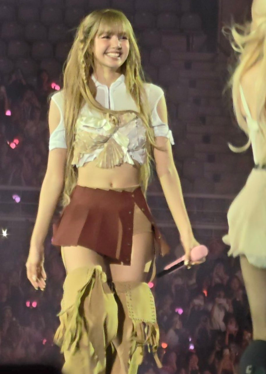 Bước lên sân khấu solo trong đêm diễn mở màn concert DEADLINE, Lisa được nhận xét trở về thời kỳ hoàng kim nhan sắc. Em út BLACKPINK diện bộ trang phục hai mảnh được phối bởi stylist Nanist.