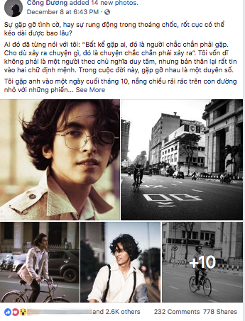 Trên trang Facebook của mình, Công Dương - anh chàng từng khiến “trưởng phòng” Trấn Thành đau đầu trong chương trình Ơn Giời, Cậu Đây Rồi, vừa tung bộ ảnh streetstyle được thực hiện ngay tại Sài Gòn đã thu hút hơn 700 lượt chia sẻ và nhiều bình luận khen ngợi về thần thái “tài tử Hồng Kông” của anh chàng.