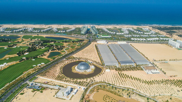Nhà Dome – mô hình có kiến trúc hình cầu đường kính 36m, chiều cao 14m với diện tích trên 1.000m2, được áp dụng công nghệ nhà kính và kiểm soát khí hậu (nhiệt độ, độ ẩm và ánh sáng) thích hợp với cây trồng, không phụ thuộc vào điệu kiện khí hậu bên ngoài