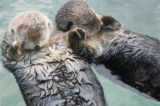 Có rất nhiều thứ thú vị khi nói về loài vật dễ thương này thế nhưng điều mà mọi người hay đề cập đến đó là chúng thường nắm tay nhau trong khi ngủ. Nhưng tại sao chúng lại làm thế? Điều này khiến chúng rất dễ bị nước cuốn trôi đi. Để tránh điều này, chúng thường nắm tay nhau hoặc quấn đuôi vào các đám rong biển. Vì vậy, nhiều người hẳn sẽ rất ngạc nhiên khi thấy hai chú rái cá nắm tay nhau ngủ vô cùng hạnh phúc.