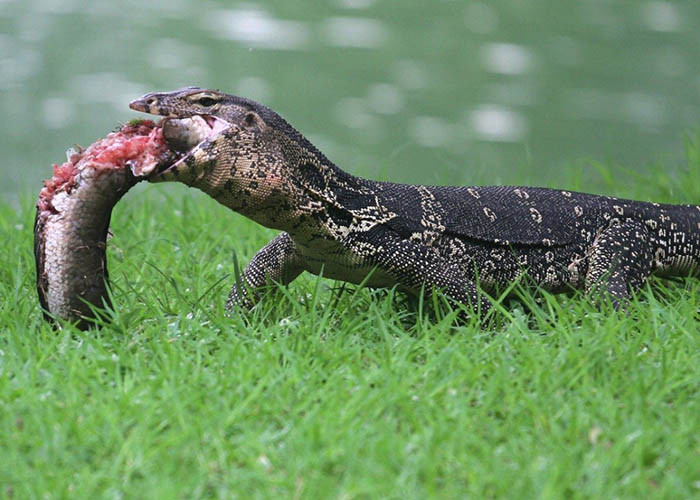 Đây là loài loài bò sát "xơi tái" mọi loại rắn, kể cả rắn độc, bao gồm hổ mang. Nhiều người cho rằng kỳ đà miễn dịch với nọc độc rắn. Tuy nhiên, theo Daniel Bennett, tác giả cuốn sách A Little Book of Monitor Lizards (Tạm dịch: Cuốn sách nhỏ về kỳ đà), cho biết, vẫn chưa rõ cơ chế kỳ đà chống chọi với nọc rắn.