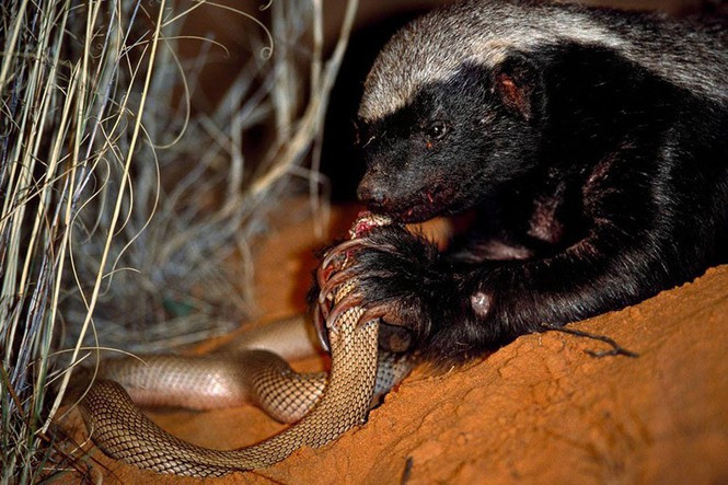 Trang National Geographic từng nhắc đến trường hợp lửng mật đối đầu với một trong các loài rắn độc nhất trên thế giới, rắn phì châu Phi hay còn được mệnh danh là "cỗ quan tài châu Phi". Nọc độc của rắn phì Châu Phi có thể hủy hoại các mô. Nhưng khi đối đầu với lửng mật thì sao? Lửng mật lao vào tấn công cắn chết rắn phì châu Phi nhưng trước đó nó cũng bị con rắn độc cắn. Vết cắn khiến con lửng mật bị hôn mê, lịm đi một lúc. Sau vài giờ, nó lại tỉnh dậy và "đánh chén" con rắn phì vừa giết được.