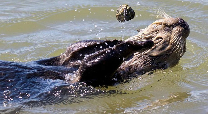 Thực ra, ít ai biết rằng đó là hành vi cơ bản của loài rái cá, kỹ năng cần thiết để chúng lấy thức ăn từ sò, trai, …