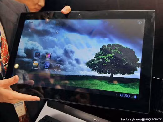 Màn hình nền LED với công nghệ cảm ứng 10 điểm, độ phân giải chưa được Asus tiết lộ.