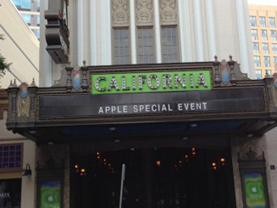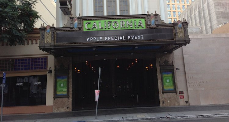 Tấm biển bên ngoài bảng nhà hát California với dòng chữ “sự kiện quan trọng của Apple”.