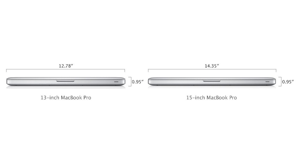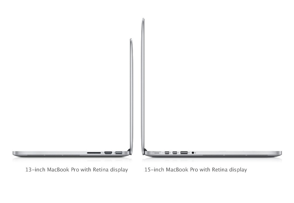Tất nhiên, MacBook Pro 13inch Retina sẽ bất nhiều khoảng trống hơn khi “vay mượn” màn hình của phiên bản 15inch để trang bị cho mẫu Retina 13inch. Kết quả là ổ quang của MacBook Pro đã bị loại bỏ, máy có độ dày hơn 0,1mm so với mẫu 15inch, nâng số đo độ dày lên 19,05mm và trọng lượng 1,58kg.
