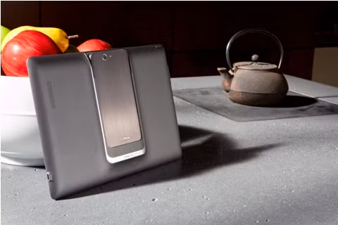 Phần đế sử dụng màn hình 10 inch Super ÍP, cảm ứng đa điểm, màn hình chống xước và chống in dấu vân tay, kết hợp hoàn hảo với PadFone để tạo thành một chiếc tablet 10,1 inch hoàn chỉnh.