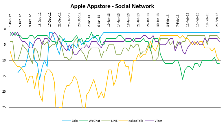 Trong cuộc đua này, hai sản phẩm đang chiếm ưu thế là Zalo (đứng đầu trong thị trường điện thoại iPhone) và Line (đứng đầu thị trường Android).