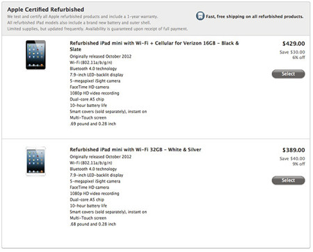 Hiện các phiên bản này đã có trên kho trực tuyến của Apple. Khách hàng có thể chọn mẫu iPad mini màu đen 16GB với Wi-Fi + Cellular với giá 429 USD, hoặc bản màu trắng 32GB chỉ có Wi-Fi với giá 389 USD.