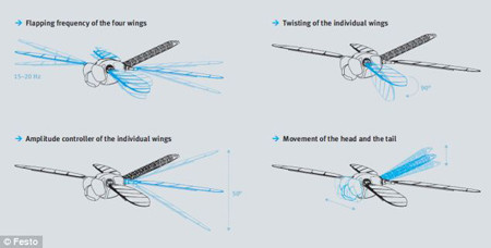 Hãng Festo vừa tung ra sản phẩm rô-bốt chuồn chuồn BionicOpter đáng kinh ngạc, có thể thực hiện các động tác bay phức tạp như chuồn chuồn thật, gồm bay lơ lửng tại chỗ, bay tiến, bay từ từ rồi bất chợt tăng tốc, thậm chí bay lùi (theo dõi đoạn video dưới đây).