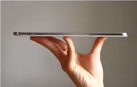 Galaxy Tab 3 8-inch được thiết kế dựa trên phong cách của Samsung Galaxy S4 với kiểu dáng nhỏ gọn, viền quanh máy bằng kim loại sang trọng và bắt mắt.