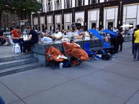 Đám đông đến sớm, ăn ngủ nằm chờ như một ngày hội, chờ đợi được sở hữu những sản phẩm đầu tiên của Apple.