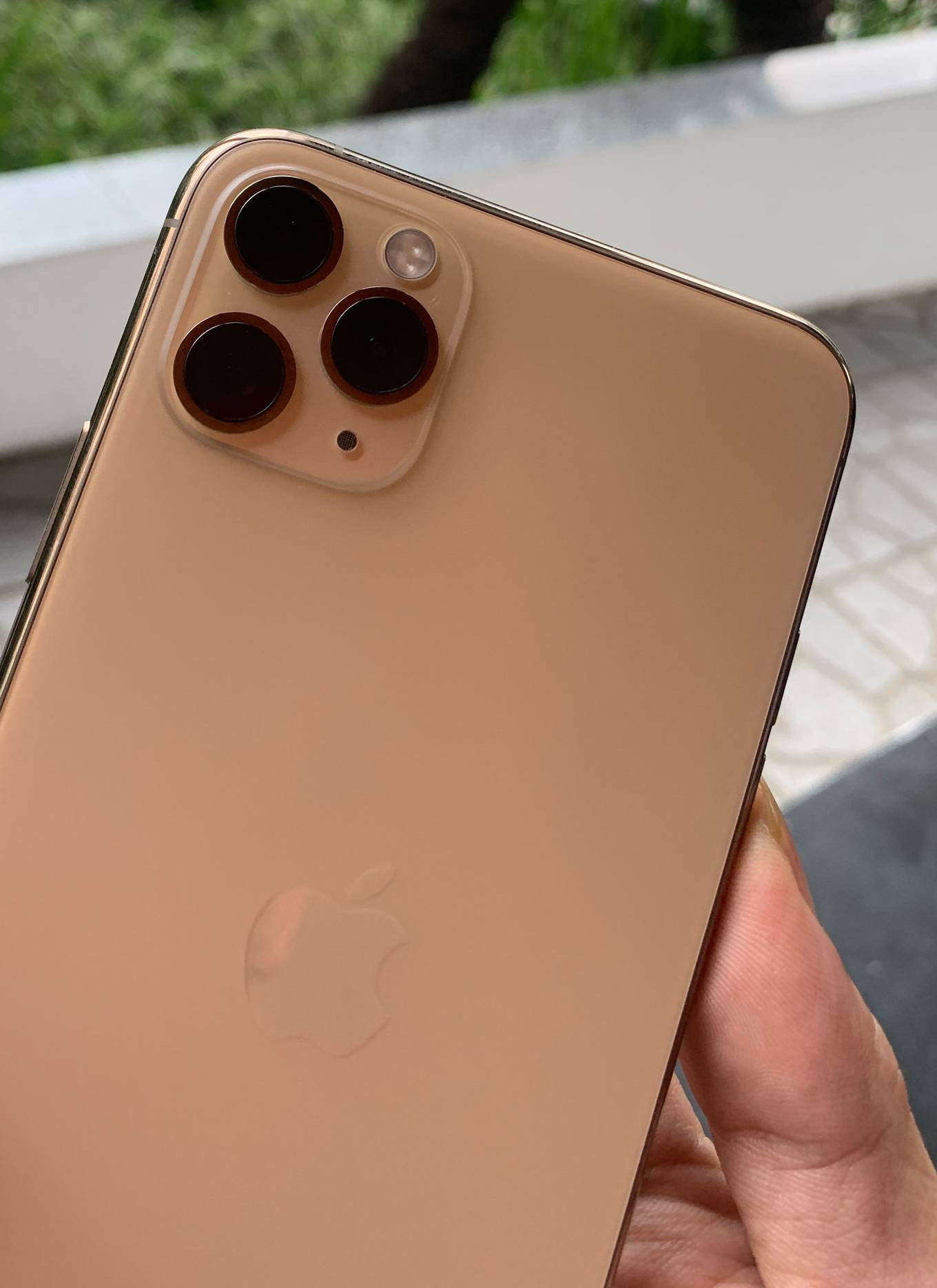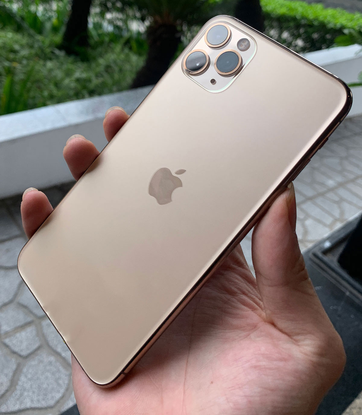 Khác biệt lớn nằm ở mặt lưng khi cụm camera có nhiều ống kính hơn và lớp kính sơn mờ. Cũng tông màu vàng nhưng màu trên iPhone 11 Pro và Pro Max trông nhạt hơn ở XS và XS Max.