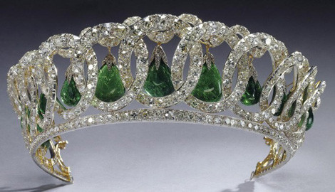 Lịch sử của chiếc vương miện kim cương quý giá có đính những viên ngọc trai hình giọt nước này đã là vật hay đội bởi Nữ hoàng Anh-Elizabeth II, nhưng nguồn gốc của nó là của Hoàng gia Nga vào thế kỷ 19. Khoảng năm 1874, Đại công tước Vladimir Alexandrovich, người em trai của Hoàng đế Alexander III, đã gửi chiếc vương miện kim cương làm quà trao cho cô dâu – vợ của ngài – là nữ Công tước Marie xứ Mecklenburg-Schwerin trong đám cưới của họ. Vương miện kim cương vô giá này được chế tác bởi thợ kim cương hoàng cung là Carl Edvard Bolin và nó được nhớ đến với cái tên Vương miện Vladimir (đặt theo tên khách hàng của thợ kim hoàn Bolin).